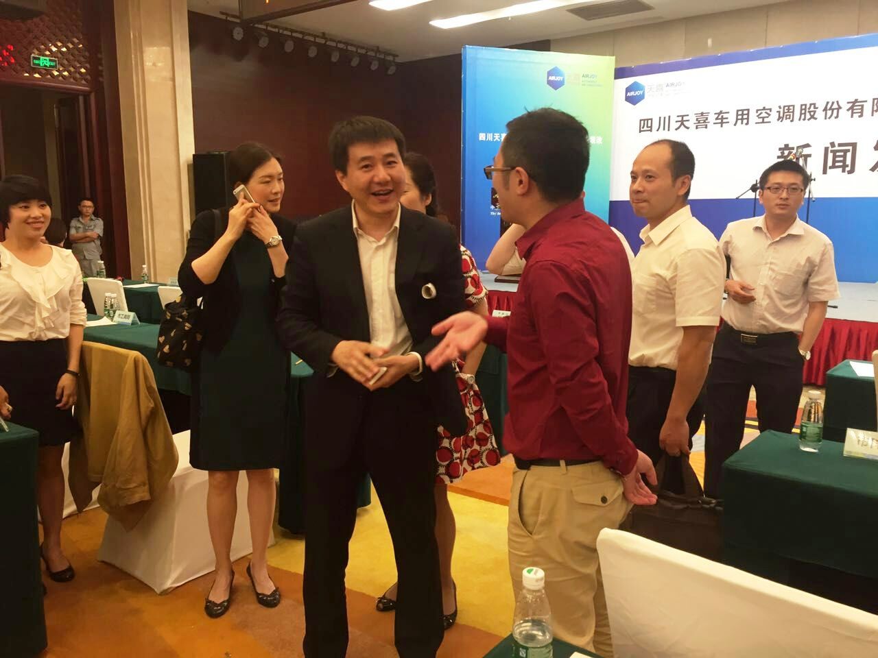 天喜空调是客车空调行业的领军企业,其生产设备设施处于全国行业的领先水平,并且与宇通客车、金龙客车、福田客车、现代客车等全国知名品牌建立了良好的合作关系。天喜空调得到了南充市委、市政府、顺庆区委、区政府、华融证券总部高度重视与认同!南充市委常委、副市长潘国华,顺庆区委副书记、区长黎明,华融证券(总部)副总经理杜向杰到场祝贺并致辞。出席新闻发布会的各方人士还包括市级区级政协、金融办、工商局、质监局、地税局、发改局等部门领导,华融证券、国浩律所、天职会所等中介机构项目负责人及团队,投资机构,供应商代表及企业员工代表等。